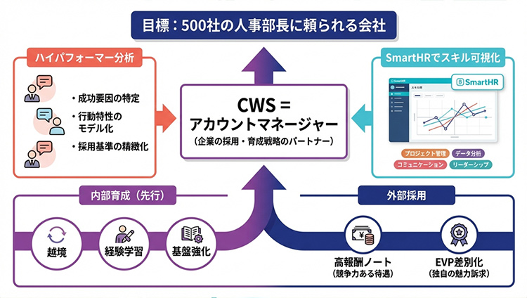 「500人の人事部長に頼られる会社」という目標は、単なるビジョンではありません。CWSとしてのアカウントマネージャーを計画的に育成し、SmartHRというツールを通じてデータに基づく人材戦略を実践することで、到達できる地点だと考えています。