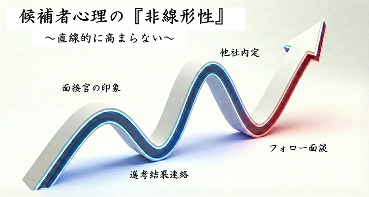 多くの企業が陥る最大の誤解は、「選考フェーズが進めば、候補者の志望度も比例して高まる」という思い込みである 。 現実は逆である。選考が進み、内定が近づくほど、候補者の心理は不安定になり、迷いは深くなる。